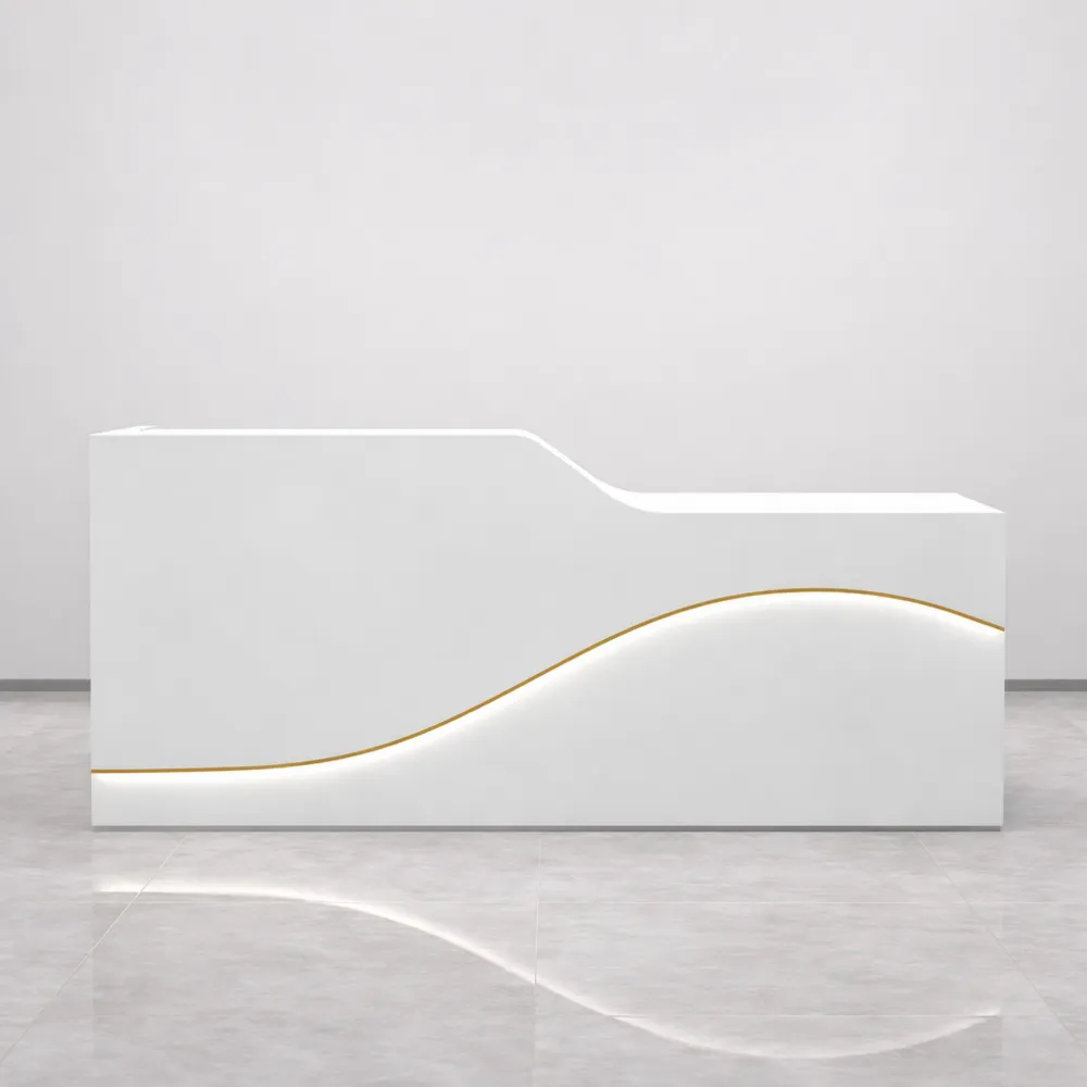 Des lignes épurées et une conception soignée pour créer un espace d’accueil professionnel, organisé et élégant.
